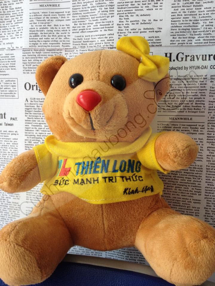 Hiểu được tâm tư nguyện vọng của nhà điều hành doanh nghiệp cũng như ban giám hiệu các trường học trên cả nước. Cửa hàng gấu bông nhận sản xuất gấu bông thêu logo theo yêu cầu của công ty, trường học. Những doanh nghiệp, trường học là khách hàng của cửa hàng gấu bông thật sự hài lòng với chất lượng gấu bông. Đặc biệt, cửa hàng gấu bông càng chú trọng việc thêu logo lên gấu bông. Khách hàng của cửa hàng gấu bông ở rất nhiều lĩnh vực như: Tập đoàn Thiên Long, Thương hiệu Vịt quay Đắc Hòa, Trung Tâm Anh Ngữ, Trường Phật Học Khánh Hòa, Các Trường Đại Học - Cao Đẳng - THPT trên cả nước.