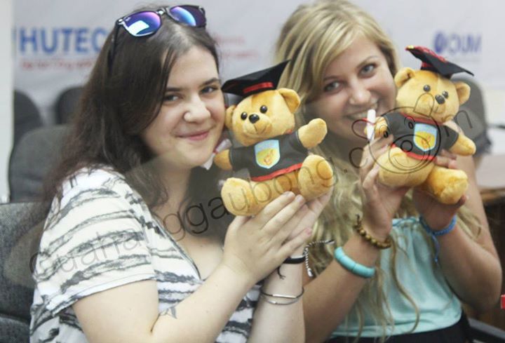 Gấu bông tốt nghiệp thêu logo Đại Học Hutech